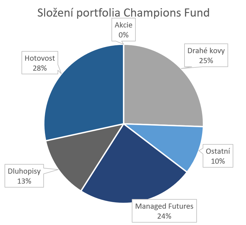 Investiční strategii fondu Champions Fund lze zařadit do kategorie „all weather“, tedy investičních fondů s cílem dosahovat ochrany kapitálu a jeho zhodnocení v různých podmínkách na kapitálových trzích včetně například inflace, rostoucích úroků či klesajících trhů.